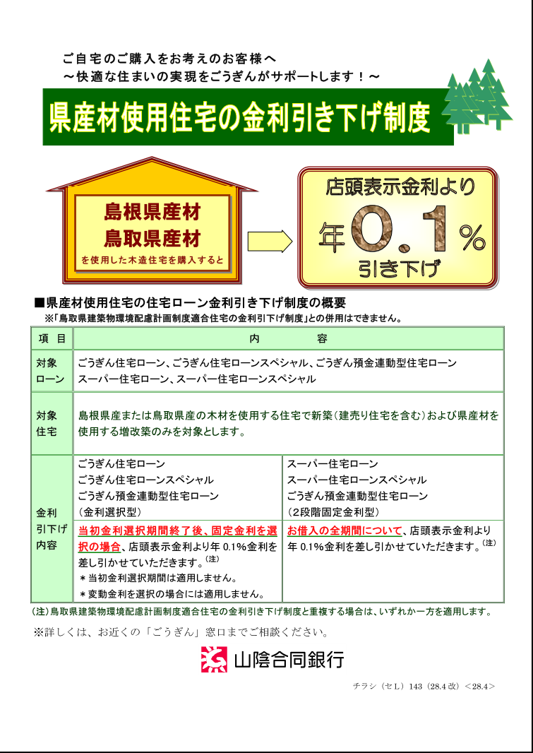 島根県産材を使ったら住宅ローンマイナス0.1%