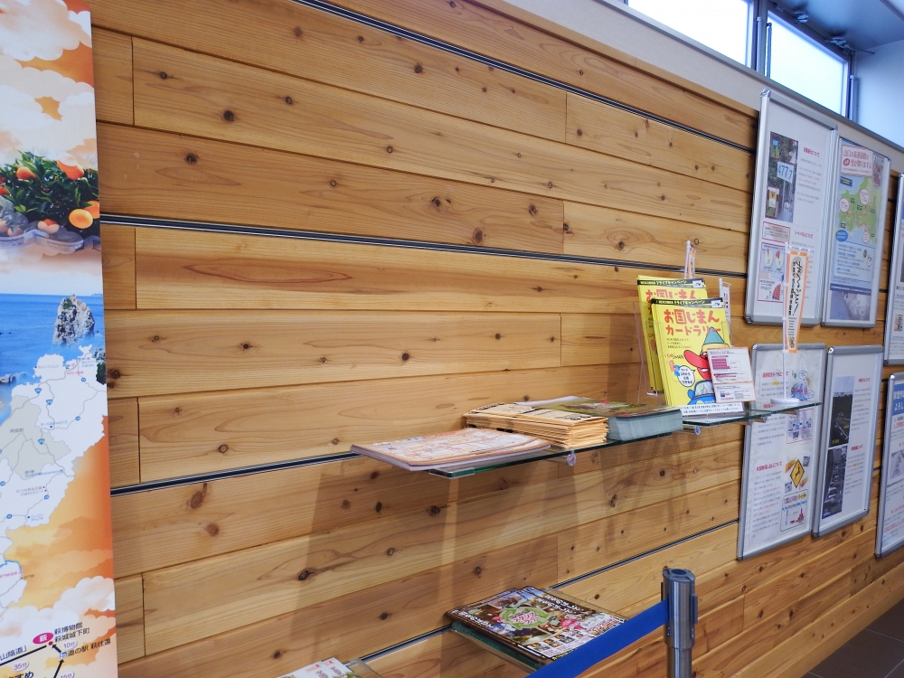 インフォメーションの壁にも使って頂き、こちらは実を両側凹実にし丁度ピッタリの金具をはめ込むと言う素晴らしい技法により、スッキリと仕上げていただいております。やっぱり木材が使われていると、どこか癒やされ安心しますね