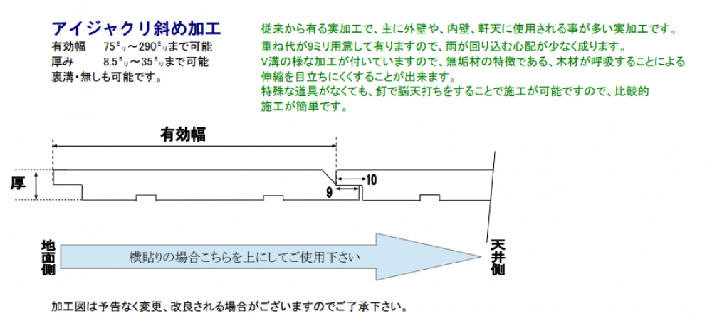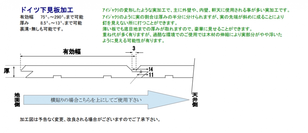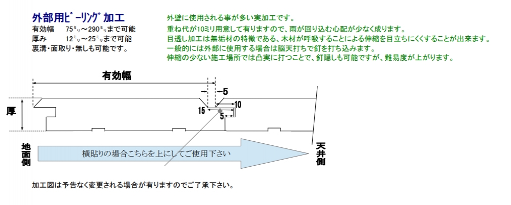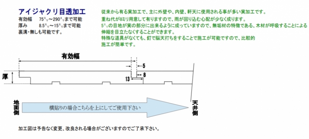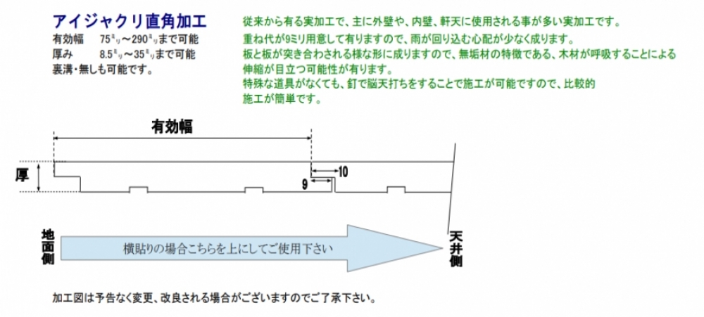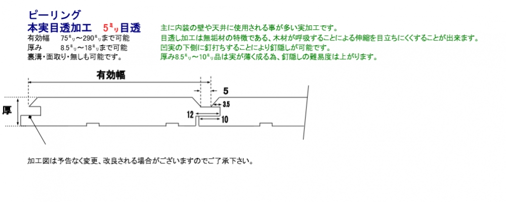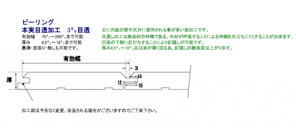 主に内装壁や天井に使用されることが多い加工です。釘隠しが可能なタイプです。