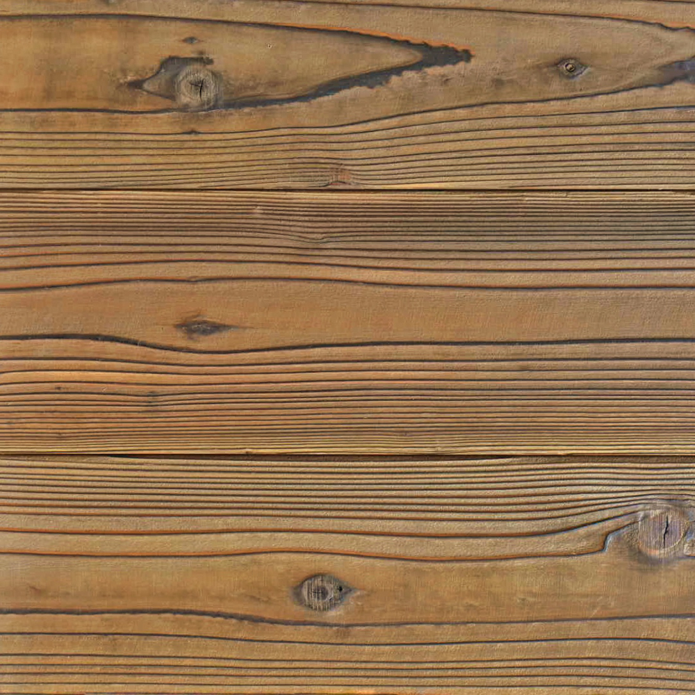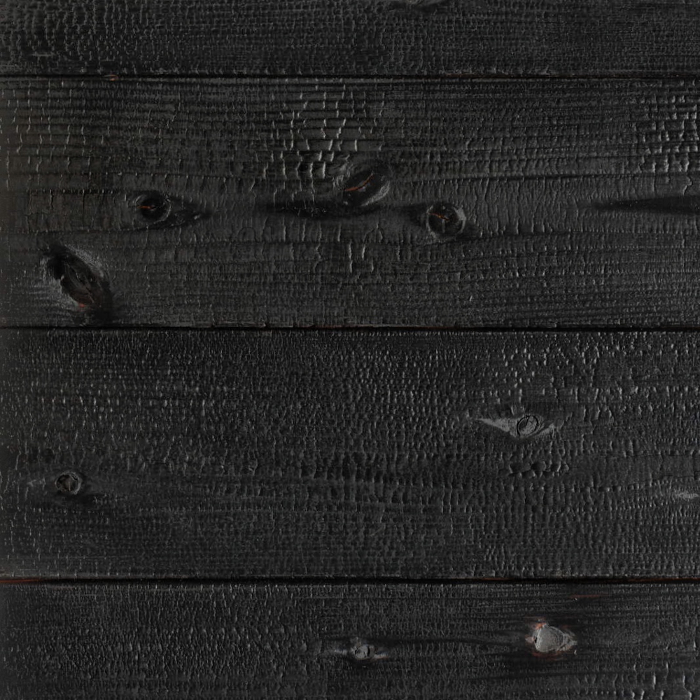 ・「軒天タイプ」は焼いた後にワイヤーブラシにより磨き込み、夏目と冬目の硬さの差によって表面の凹凸が表現されています。無塗装の焼杉浮造(うづくり)タイプとも呼ばれます。
