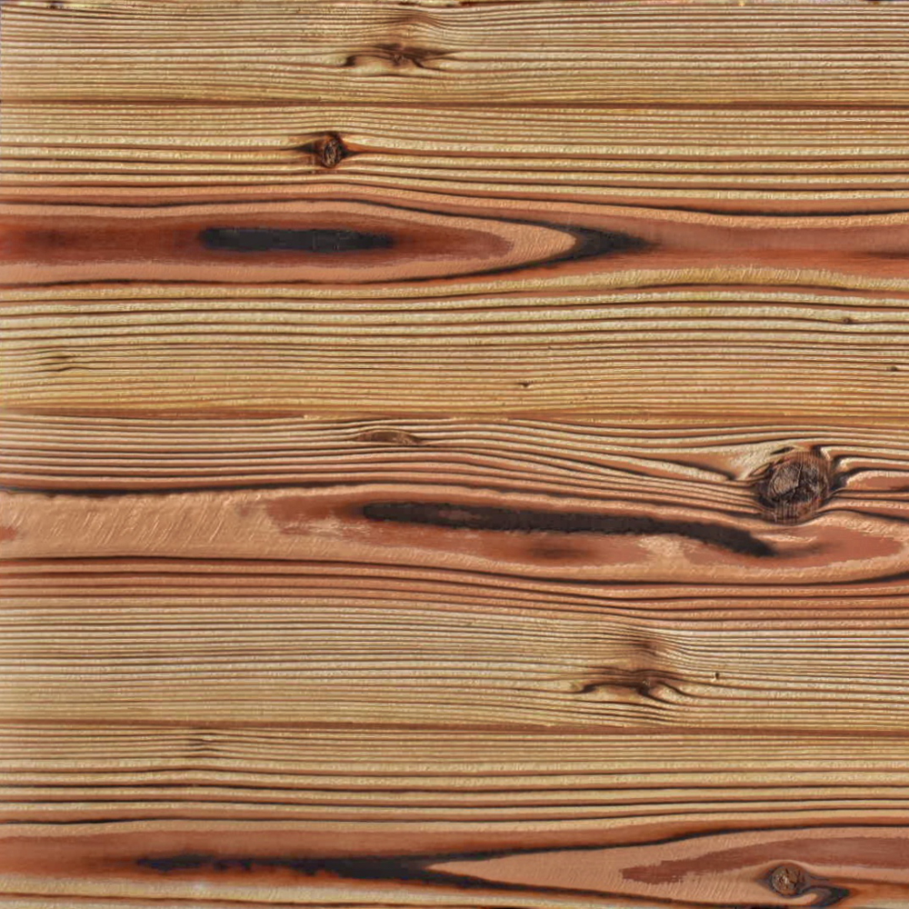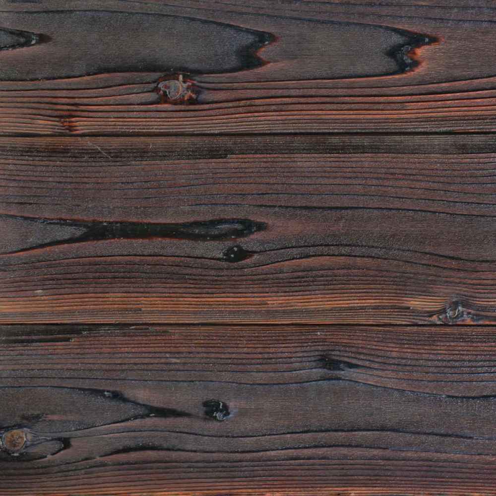 弊社ではその伝統的な技術を現代に活かしガスバーナーの炎で焼いて焼杉を製造しております。現在ではその表情が味わいあるものであるため内装に使われることもあります。